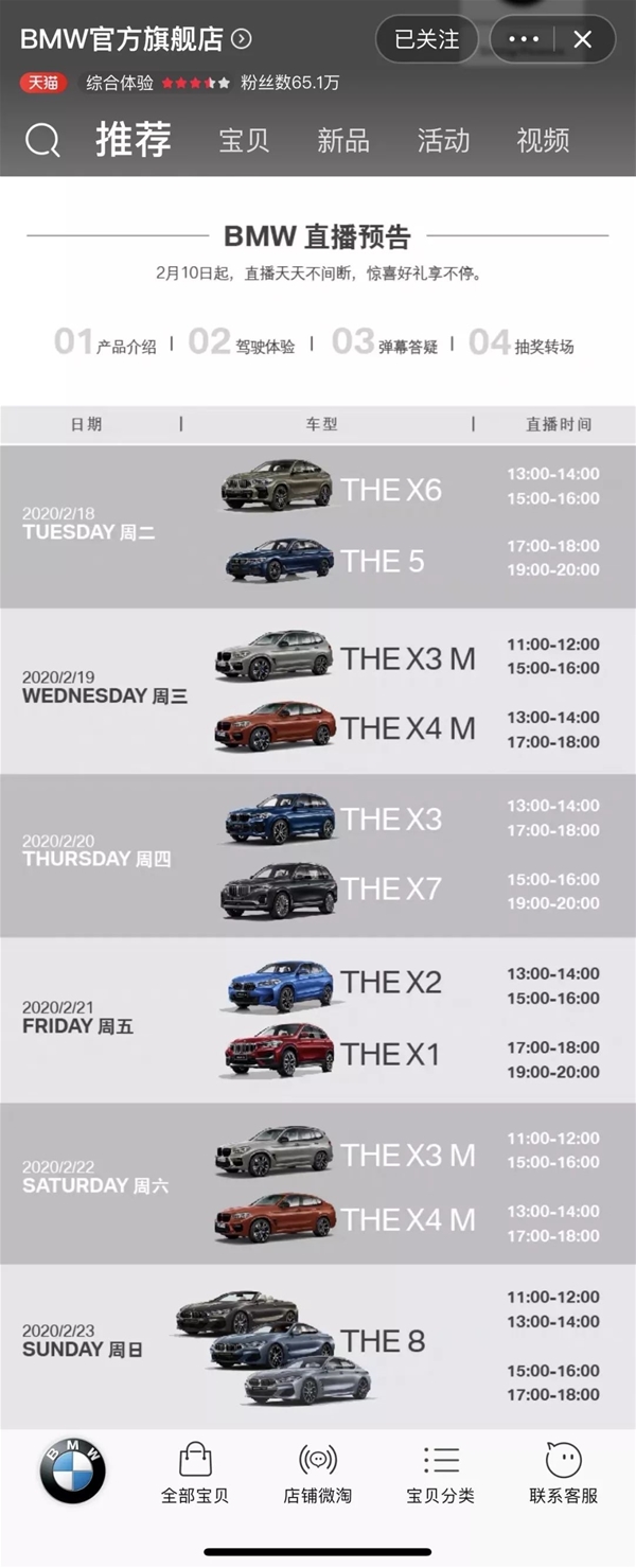 2月10日復(fù)工后,寶馬、奧迪等 23 個(gè)全球汽車品牌入駐淘寶開(kāi)播賣車,每天 100 場(chǎng)汽車直播,有專業(yè)主播介紹,不但詳細(xì)介紹車內(nèi)外情況,還可以帶人“云試駕”。 云發(fā)布會(huì):小米10一分鐘賣出2億