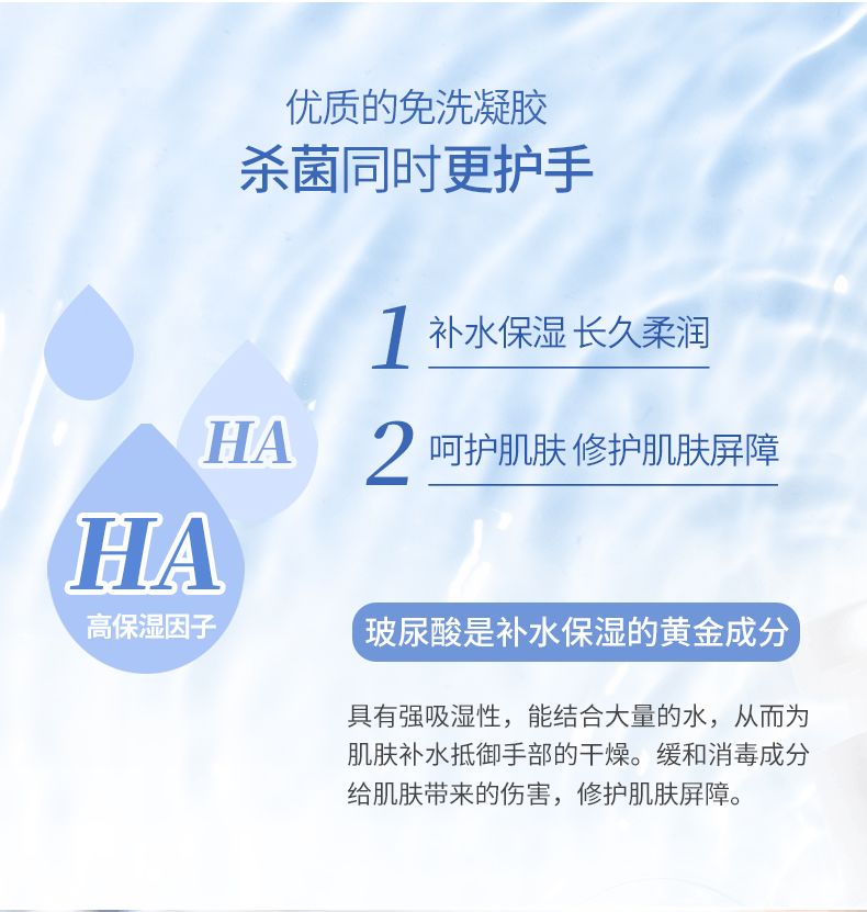 很多禾粉表示天天用免洗酒精,非常干燥,一天洗好多遍直呼手部肌膚受不了,接觸酒精有點(diǎn)刺激,手部都出現(xiàn)皸裂了。消毒凝膠內(nèi)含有玻尿酸成分,溫和不傷手,殺菌更護(hù)手! 除了常見的大腸桿菌、葡萄球菌等,還能有效殺滅多種容易感染生病的病菌!減少手足口病、流感、乙肝等疾病的發(fā)生。
