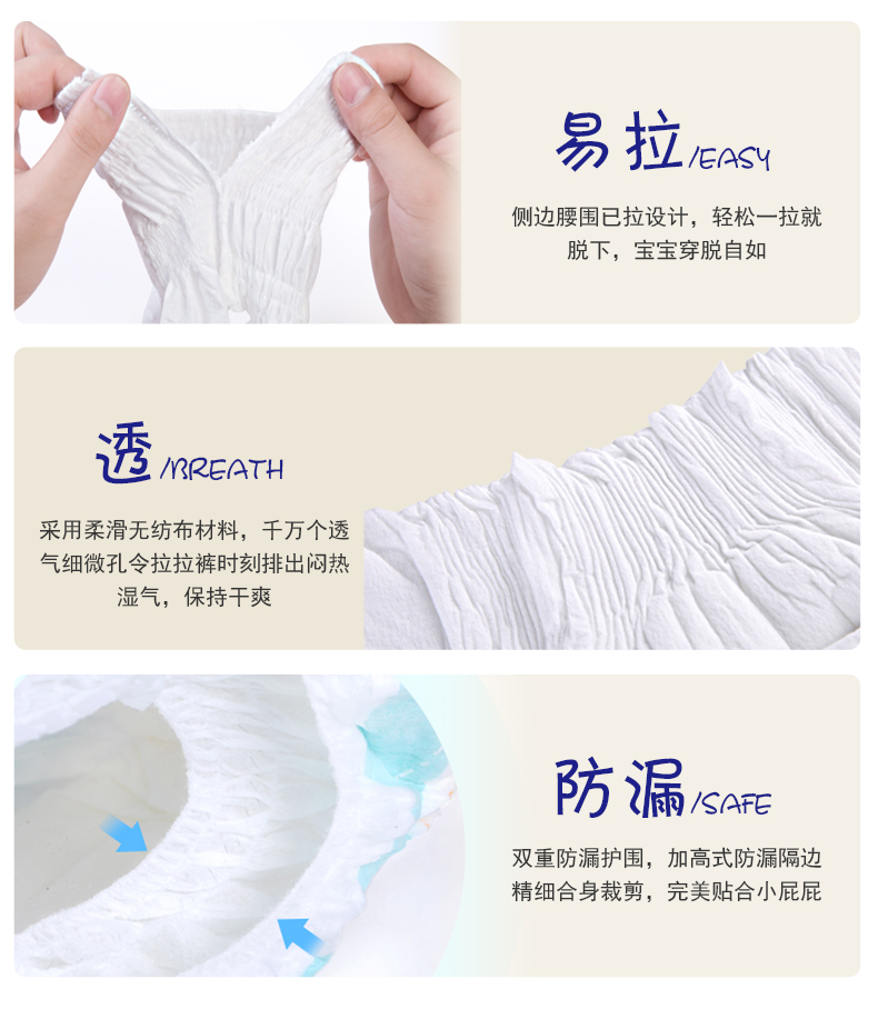 紙尿褲從寶寶呱呱墜地開始就一直陪伴在寶寶左右,因此選紙尿褲更要pick好的。 現(xiàn)在市面上五花八門手感硬的紙尿褲大多膠水過多,而膠水一但過量就會減小尿褲的通溶性能,直接導(dǎo)致反滲的風(fēng)險!要不就底膜顏色很豐富,雖好看,但也增加了化工顏料對皮膚的傷害,特別寶寶的肌膚本來就嬌嫩容易被細(xì)菌感日積月累下來對寶寶的皮膚影響可就是終身的了。